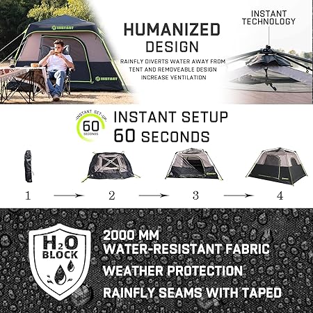 4/6/8 Person Instant Tent, Waterproof Pop Up Tents for Camping with Rainfly, 60 Seconds Easy Setup, Automatic Cabin Tent for Family Camping with Expandable Carry Bag & Upgraded Ventilation